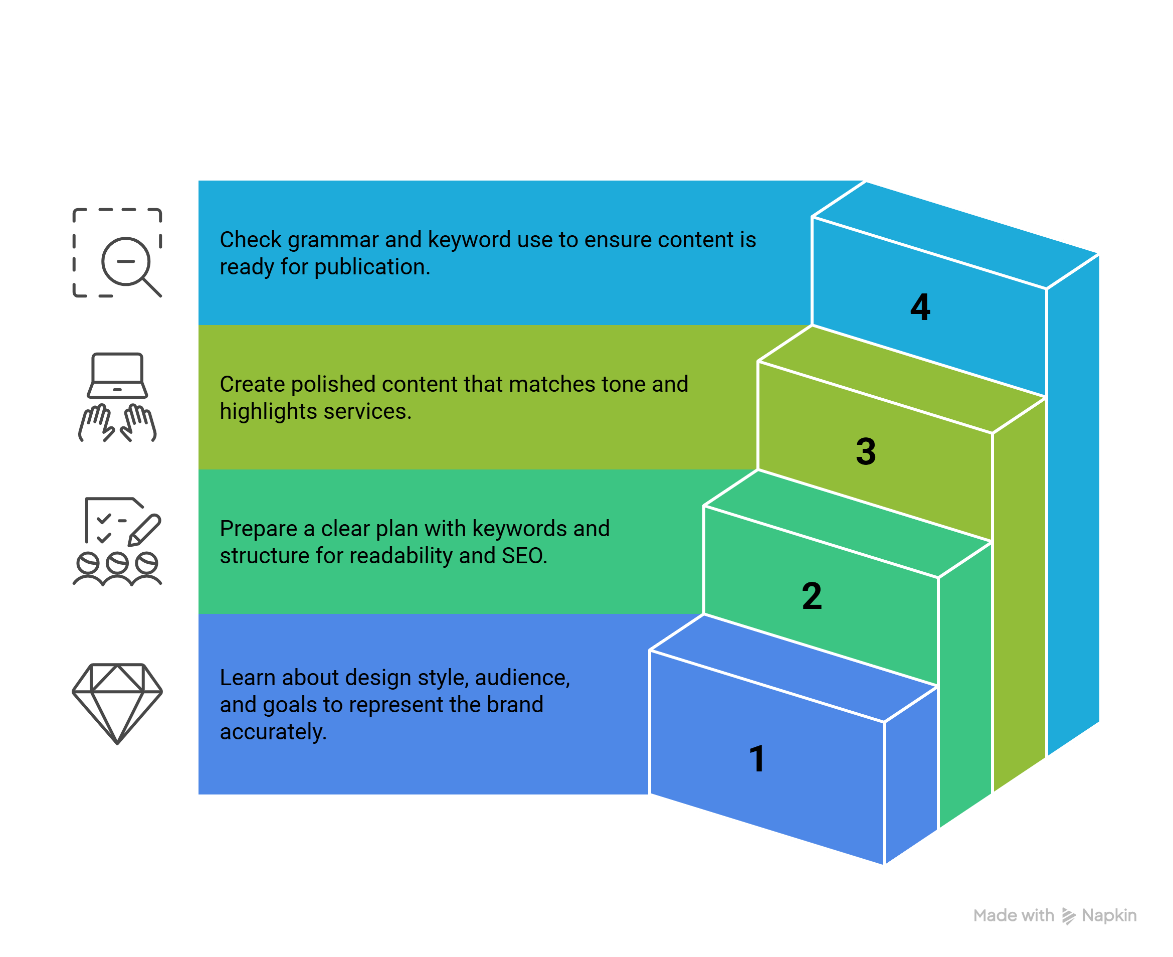 Before writing, we learn about your design approach, tone, and target audience. Every piece of content is written to sound like your brand and communicate your message clearly.